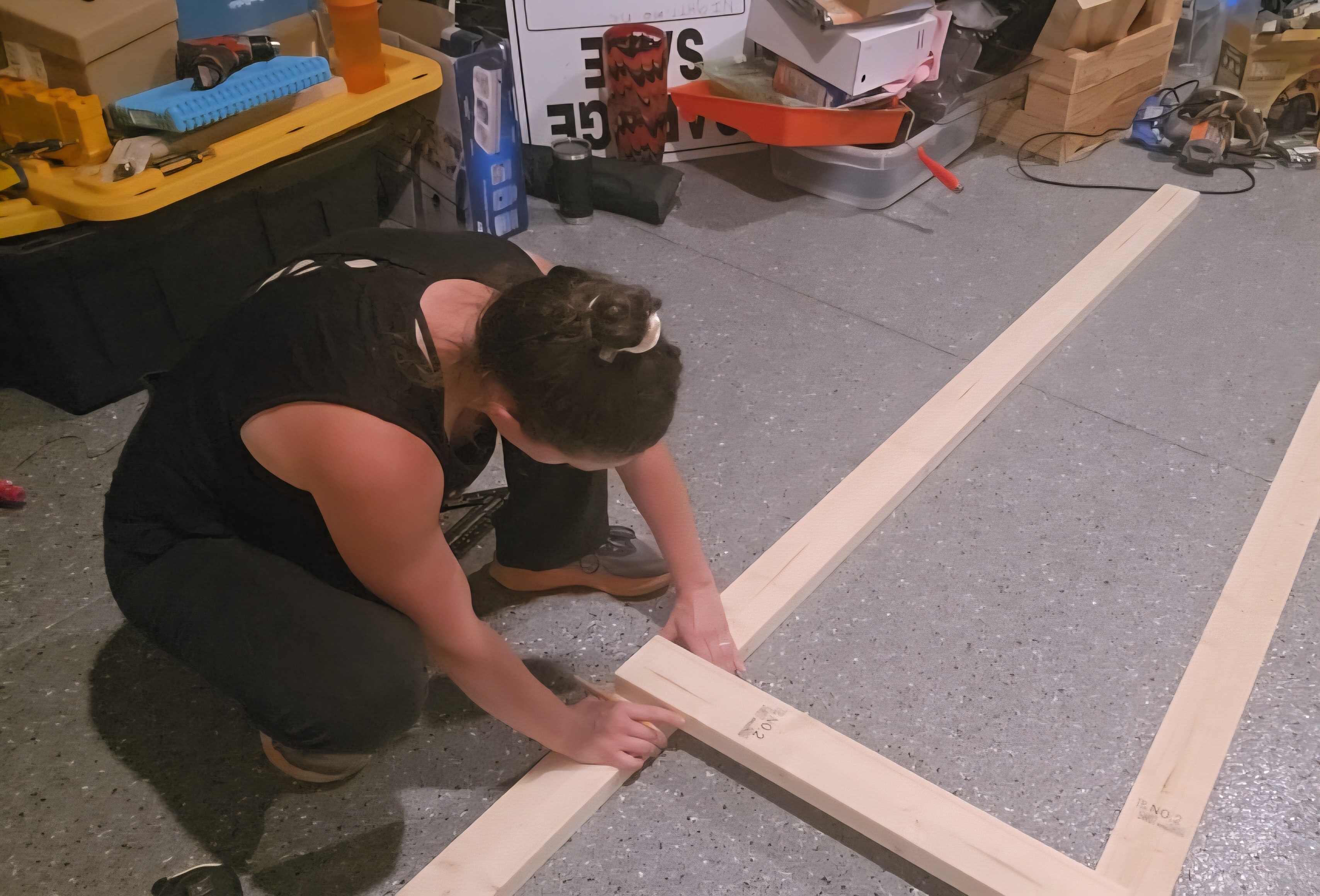 This honestly saved us a lot of time and energy, since we didn’t have to re-measure everything. But if you feel more comfortable measuring each piece individually, I fully support your decision! We were just hot, exhausted, and the humidity in the garage didn’t help our patience. 😂
